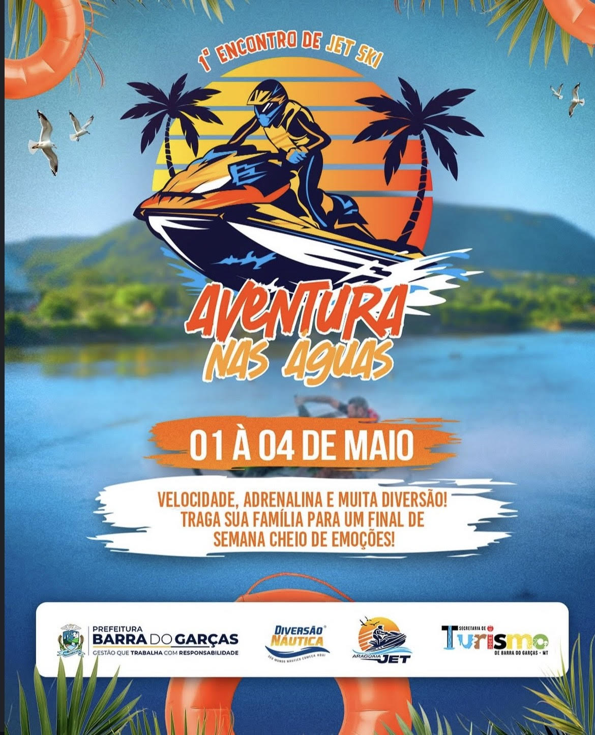O 1º Encontro de Jet Ski “Aventura nas Águas” será um evento imperdível, reunindo amantes do esporte e turistas em Barra do Garças, com uma programação de adrenalina e diversão, que inclui passeios pelos principais pontos turísticos da região do Vale do Araguaia.